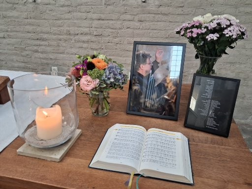 Ein Kondolenzbuch liegt auf dem Altar ebenfalls auf. Wir möchten es an die Familie von Dominik Wortig weiterleiten.